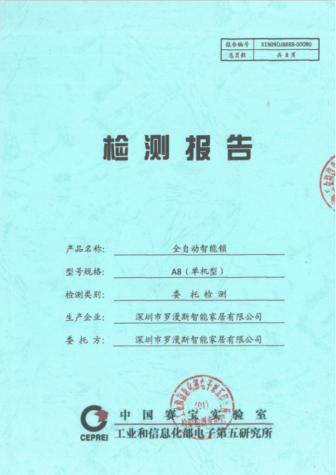 近日,羅曼斯的A8全自動(dòng)智能鎖和新品G3智能門(mén)鎖嚴(yán)格按照相關(guān)規(guī)定和要求,分別通過(guò)了中國(guó)賽寶實(shí)驗(yàn)室檢測(cè)認(rèn)證、公安部安全與警用電子產(chǎn)品質(zhì)量檢測(cè)中心&國(guó)家安全防范報(bào)警系統(tǒng)產(chǎn)品質(zhì)量監(jiān)督檢驗(yàn)中心認(rèn)證。