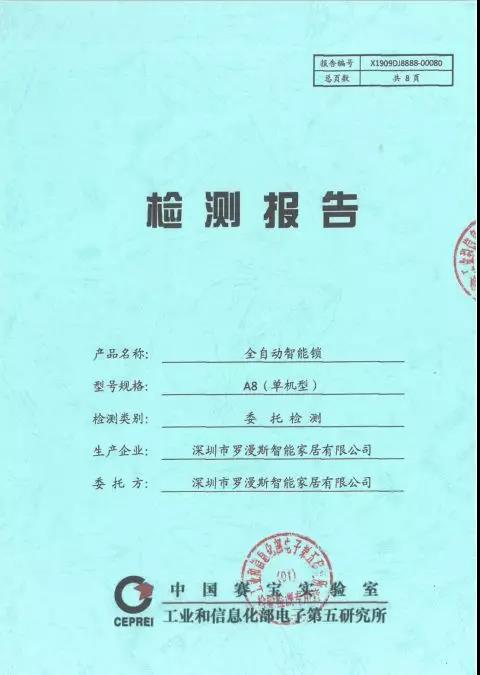 A8在做工方面突破了行業(yè)傳統(tǒng)的手法,在業(yè)內(nèi)率先將與智能手機(jī)一樣的CNC工藝應(yīng)用于智能鎖上,讓A8也能像智能鎖手機(jī)一樣擁有科技時(shí)尚的外觀。同時(shí),羅曼斯A8還搭配業(yè)內(nèi)造價(jià)較高的全鋼化玻璃,硬度達(dá)到了9H,耐磨性高于普通智能鎖。并通過(guò)中國(guó)賽寶實(shí)驗(yàn)室檢測(cè)認(rèn)證、公安部安全與警用電子質(zhì)量檢測(cè)中心檢測(cè)認(rèn)證。